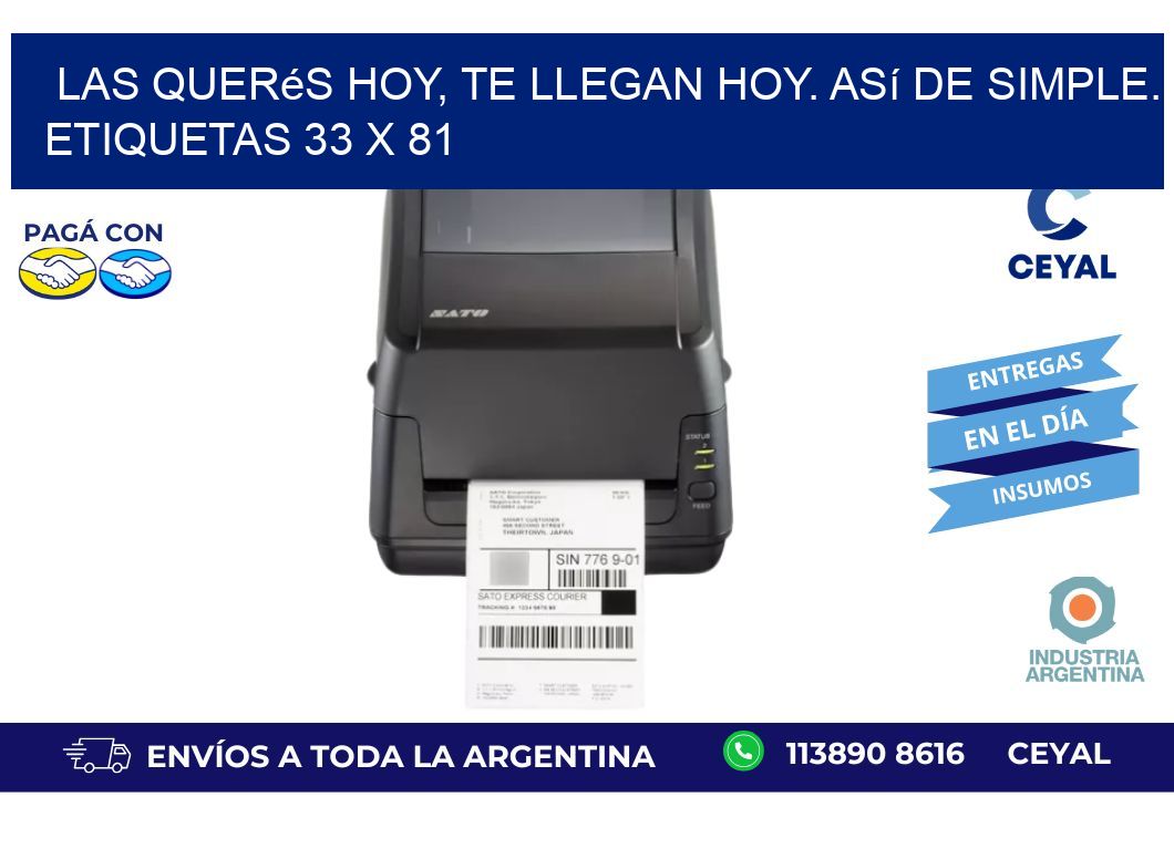 Las Querés Hoy, Te Llegan Hoy. Así de Simple. Etiquetas 33 x 81